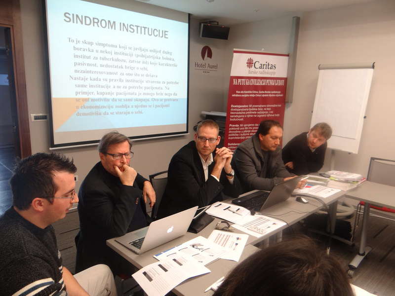 At the beginning of the meeting, the project coordinator Marko Đelović presented the activities and results achieved during the first year of the project. After that, Dr. Paolo Serra, an adviser on the project from Caritas Italy, gave a presentation on deinstitutionalization and the way the mental health system developed in Italy, while Dr. Aleksandar Tomčuk gave a presentation on the current state and future plans of the mental health system in Montenegro.